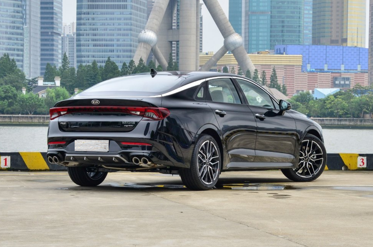 侧面车身的设计也是非常独特,溜背式的车顶让这款车表现出了一种独一无二的魅力,五幅式的轮毂看上去也是非常大气的,腰线设计也是符合起亚家族的设计理念,这款车车身尺寸长宽高是4980×1860×1445,轴距达到了2900毫米,在中型车领域当中,这样的车身尺寸也是占上乘的,车尾的设计跟车头是遥相呼应,尾灯采用的是贯穿式的设计方式,下方两侧分别有两个排气筒。